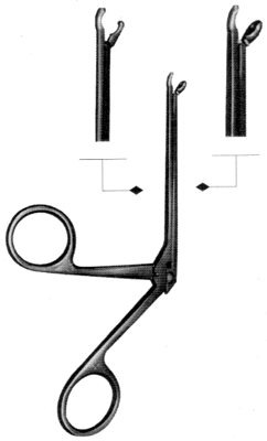 Щипцы гортанные полипные с раскрытием подвижной губки вверх